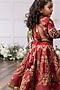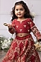 Featuring a red lehenga for girls in silk base with embroidery. It is paired with an embroidered blouse. Style it with cute hair accessories and sandals for a festive occasion or wedding ceremony.