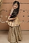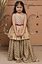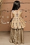 Featuring a beige peplum top for girls in dola silk base with hand-block print and hand embroidery. It is paired with a printed sharara. Style it with sandals and hair accessories for festive occasions.