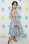 Featuring a blue top for girls in cotton base with print and lace detail. It is paired with a pleated skirt. Accessorise it with matching hair accessories and sandals for a stylish ensemble, ideal for vacation wear or playdate.