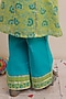 Lemon Green & Blue Cotton Hand-Blocked Printed Kurta Set For Girls