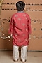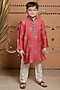 Featuring a pink kurta for boys in cotton silk base with block print. It is paired with pyjama pants. Team it up with mojaris and watch for a festive occasion or sangeet ceremony.