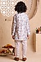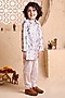 Featuring a cream kurta for boys in modal satin base with print. It is paired with cotton silk trousers. Accessorize this set with mojris and a watch for a stylish ensemble, ideal for ceremonial events or any festive occasion.