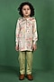 Featuring a green short kurta for boys in modal satin base with a print and embellishment. It is paired with cotton silk pants. Team it up with mojaris and watch for a festive occasion or sangeet ceremony.