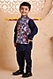 Navy Blue Modal Satin Printed Nehru Jacket Set For Boys