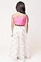 Featuring a pink top in organza base. It is paired with contrasting white palazzo pants.