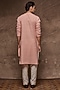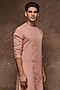 Featuring a dusty pink asymmetrical kurta in organic cotton base. Perfect wear for festive or pooja occassions.