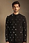 Featuring a black bandhgala in viscose polyester base with geometric metallic and motifs embroidery. It is paired with a terry rayon kurta and straight trousers. Style it with shoes for a wedding, sangeet or engagement ceremony, exuding charm and elegance.