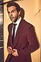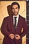 Featuring a burgundy tuxedo in viscose polyester base. It is paired with a terry rayon shirt and black trousers. Perfect wear for a cocktail party or reception ceremony.