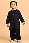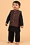 Black Cotton Printed Nehru Jacket With Kurta Set For Boys