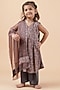 Featuring a brownish grey flared kurta for girls in cotton base with bandhani print. It is paired with grey pants having an elasticated waistband and a dupatta. Style it with a pair of cute sandals to amplify your look. Perfect wear for any festive occasion.