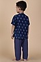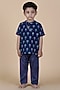 Indigo Blue Cotton Printed Kurta Set For Boys