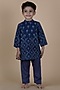 Indigo Blue Cotton Printed Kurta Set For Boys
