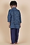 Indigo Blue Cotton Printed Nehru Jacket For Boys