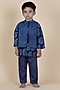 Indigo Blue Cotton Printed Nehru Jacket Set For Boys