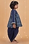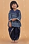 Indigo Blue Cotton Slub Dhoti Set For Girls