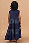 Indigo Blue Cotton Slub Printed Checkered Flared Dress For Girls