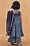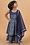 Indigo Blue Cotton Slub Printed Kurta Set For Girls