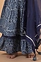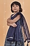 Featuring an indigo blue sleeveless flared kurta for girls in cotton slub base with jaal print, pleated pintucks, piping and tassel drawstring detailing. It is paired with palazzo pants having an elasticated waist and an organza dupatta having tassels and lace detailing. Style it with a headband and footwear to amplify your look. Perfect wear for any festive occasion.