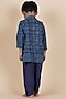 Indigo Blue Cotton Slub Printed Nehru Jacket Set For Boys
