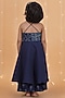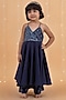 Featuring an indigo blue tiered kurta for girls in cotton slub base with hand block print and noodle straps. It is paired with palazzo pants having an elasticated waist. Style it with a headband and sandals to amplify your look. Perfect wear for any festive occasion.