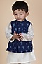 Featuring an indigo nehru jacket for boys in cotton base with a mandarin collar, pockets and hand block print. Style it with a pair of mojris to amplify your look. Perfect wear for any festive occasion.
