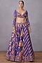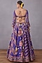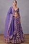 Featuring an amethyst purple lehenga in pure cotton silk, handwoven chanderi, dupion, and sheer silk organza base with print. It is paired with a matching embroidered blouse and a dupatta.