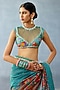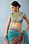 Featuring a aqua blue blouse in butterfly net and jeni silk slub base with embroidery. Accentuate it with a saree, statement jewellery and heels for wedding ceremonies.