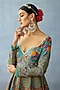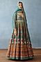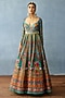 Featuring an aqua blue anarkali in silk slub base with digital print. It is paired with an organza dupatta. Accentuate with statement jewellery and heels for a festive or a sangeet ceremony.