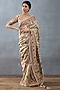 Torani features a mesmerizing Beige Saree that captivates with its intricate digital print. The eye-catching saree is crafted in handwoven chanderi and cotton silk. Style this designer saree with pearl drop choker necklace and a beaded bracelet for weddings, showcasing style and sophistication.