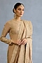 Featuring a beige kurta in jeni silk, brocade and tissue base with embroidery. It is paired with churidar pants and an embroidered dupatta. Accentuate it with statement earrings, embellished juttis and a potli bag for a complete festive look, Perfect wear for festive occasion or sangeet ceremony.