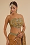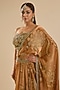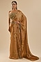 Featuring a beige saree in tissue and jeni silk base print and hand embroidery. It is paired with a blouse. Accentuate the saree set with statement polki jewellery, soft waves or a sleek bun, and embellished heels for a stunning festive, cocktail or wedding look.