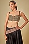 Featuring a black bralette in handwoven thin chanderi and cotton silk base with mirror hand embroidery. Accentuate it with saree, statement jewellery and embellished heels for a festive occasion, wedding or sangeet ceremony.