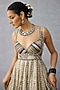 Torani features a mesmerizing Black & White Anarkali Set that captivates with its elegance. The eye-catching anarkali is crafted in handwoven chanderi, cotton silk and silk crepe organza with hand motifs, tassel, sequins work and digital print. It is paired with a dupatta. Accentuate it with statement jewellery and heels for a festive occasion, wedding or engagement ceremony.