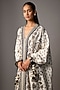 Featuring a black and white kaftan in linen base with digital chintz print, floral and lace work. Accentuate it with a kundan stud earrings, a sleek clutch and block heels, perfect for festive occasions, cultural events or sangeet ceremony.