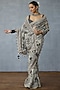 Torani features a mesmerizing Black & White Saree that captivates with its elegance. The eye-catching piece is crafted in organza with tassels, chintz and kalamkari digital print. Accessorize the designer saree with a blouse, statement jewellery and heels for any festive occasion, engagement or wedding ceremony.