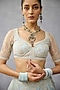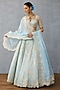 Blue Organza Tropical Motif Hand Embroidered Lehenga Set