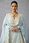 Torani features a mesmerizing blue lehenga in butterfly net and organza base with dori and tropical motif hand embroidery. It is paired with an embroidered blouse and a dupatta. Style it with statement earrings and heels for a wedding, sangeet or engagement look.