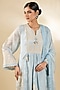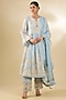 Featuring a blue kurta in silk crepe organza, jeni silk and cotton silk base. It is paired with pants and a dupatta. Complete your festive or wedding look with dangler earrings, clutch and elegant heels.
