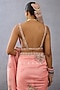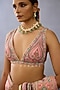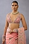Featuring a blush pink blouse in butterfly net base with embroidery. Accentuate it with a saree, statement jewellery and heels for wedding ceremonies.