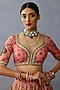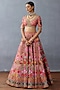 Featuring a blush pink lehenga in organza and raw silk base. It is paired with a blouse and a dupatta having print and embroidery. Accentuate it with statement jewellery and heels for sangeet or wedding ceremony.