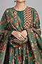 Featuring a bottle green kurta in handwoven chanderi base with aari embroidery. It is paired with matching pants and a dupatta.
