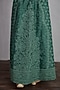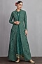 Featuring a bottle green dress in handwoven chanderi base. It is paired with a jacket having dori machine embroidery. Accentuate it with dangler earrings and heels for a festive occasion or mehendi ceremony.