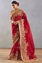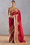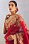 Featuring a bright red saree in silk organza base with hand adda work and hand gota embroidery. This contains one piece only.