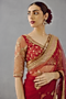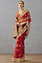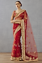 Featuring a bright red saree in butterfly net base with hand adda work, gota, dori and boota hand embroidery. This contains one piece only.