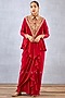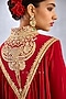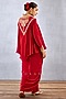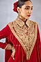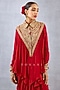 Featuring a bright red shirt in silk crepe base with gatherers, hand adda work, dori and hand embroidery. It is paired with matching dhoti pants.