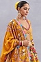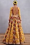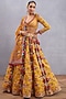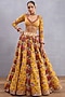 Featuring a topaz yellow lehenga in pure cotton silk, handwoven chanderi, and organza silk base with embroidery. It is paired with a matching printed blouse and a dupatta.