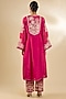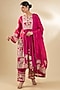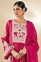 Featuring a dark pink kurta in silk crepe organza, jeni silk and cotton silk base. It is paired with pants and a dupatta. Complete your festive or wedding look with dangler earrings, clutch and elegant heels.