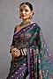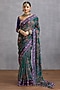 Torani presents a green and blue saree in viscose organza base with digital chintz and kalamkari print detail. Style it with a blouse, statement earrings, embroidered kolhapuri heels and a sleek clutch for festive gatherings or wedding functions.