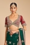 Featuring a green saree in chinon georgette base. Style it with a blouse, statement earrings and heels for a festive occasion, wedding, mehendi or engagement ceremony.