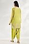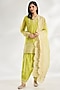Featuring a green pintuck kurta in handwoven chanderi, cotton silk, cotton voile and silk organza base with aari embroidery. It is paired with salwar and a dupatta. Accentuate it with statement jewellery and heels for a festive occasion, sangeet or mehendi ceremony.